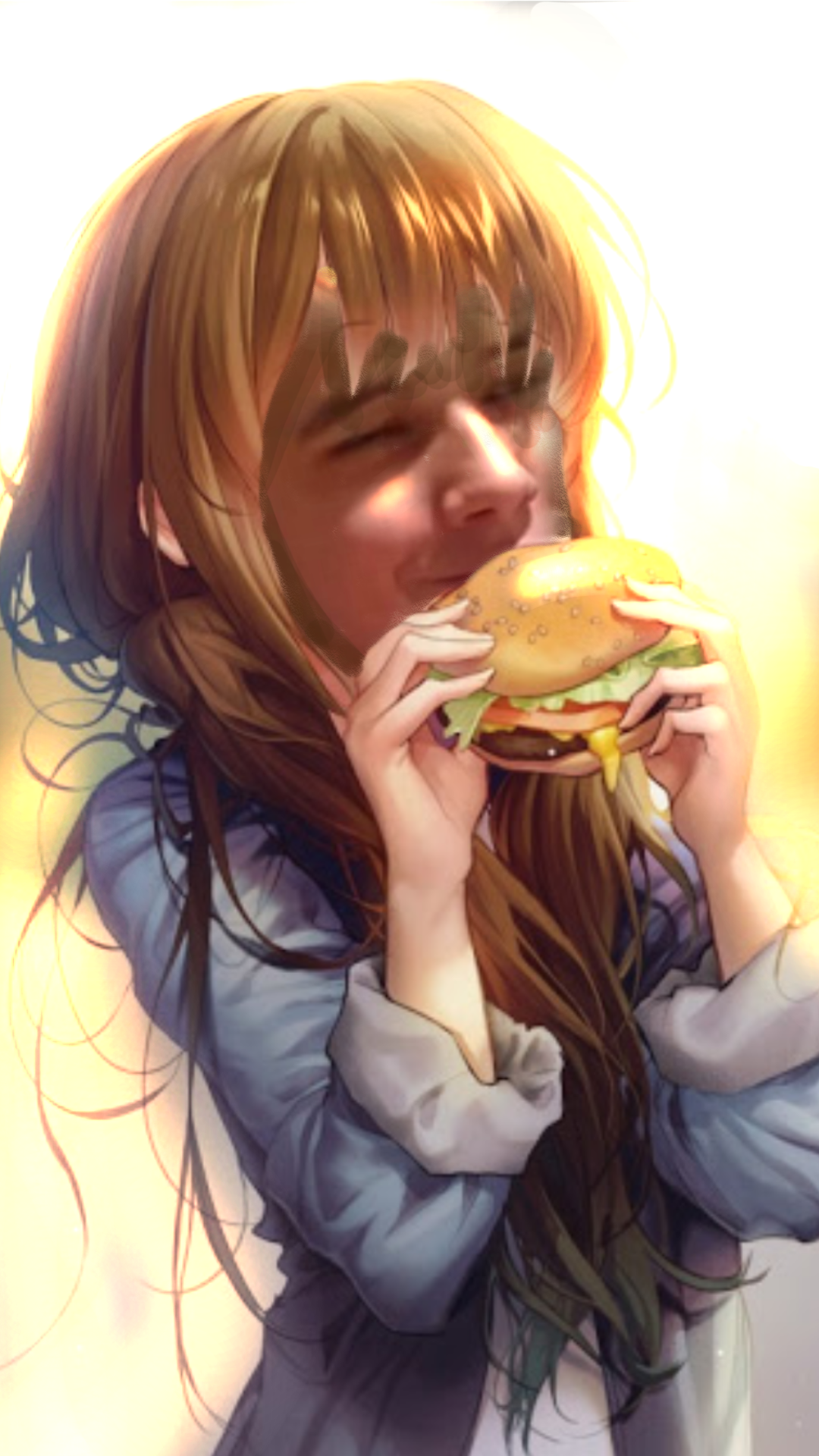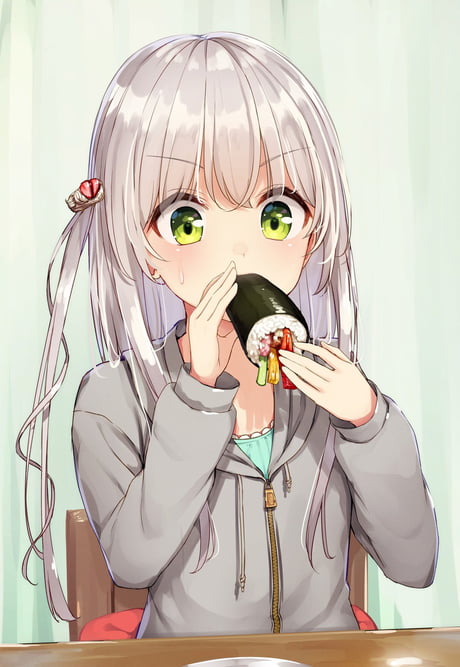 Anime girl eating cum with food